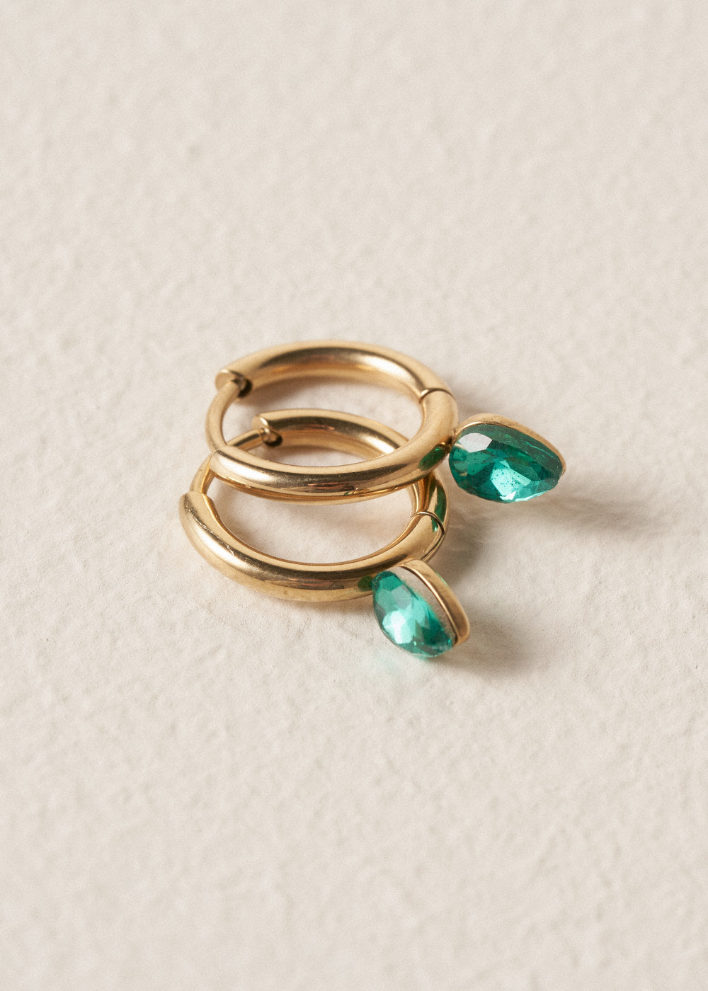 The Bethan Earrings feature a delicate, turquoise crystal pendant elegantly hung from a secure, gold hoop. Easy to wear, they add subtle colour and sparkle.