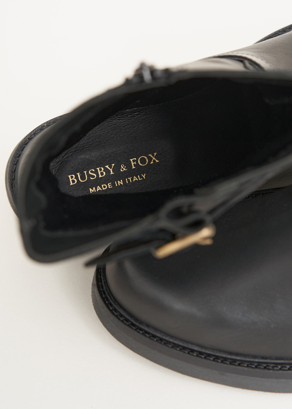 Composition: Leather upper, rubber sole, metal zip and buckles