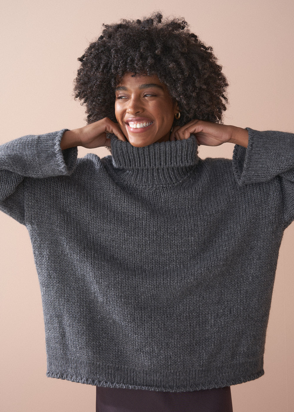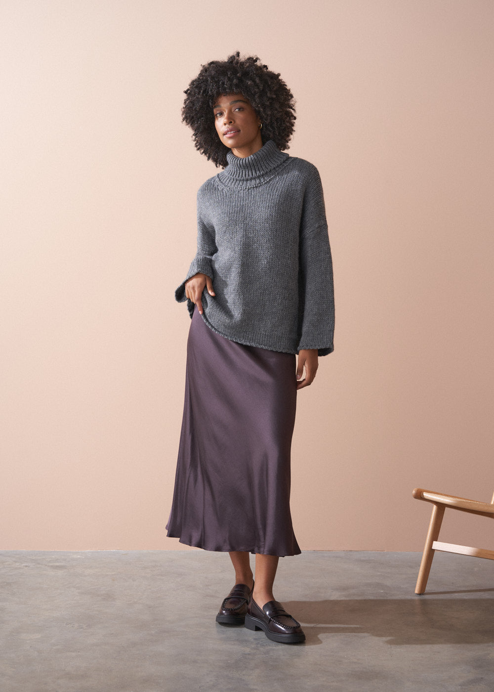 For your statement knitwear fix, look no further than the Briar sweater. Made from a luxurious alpaca wool blend, this chunky knit features a cosy roll neck, slouchy oversized fit and wide sleeves.