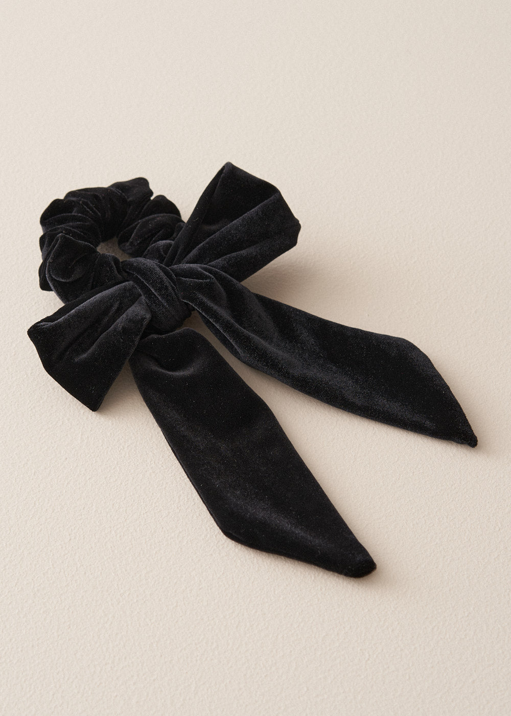 The Celaena Scrunchie is crafted from soft black velvet and has an added tie detail for an elevated finish.