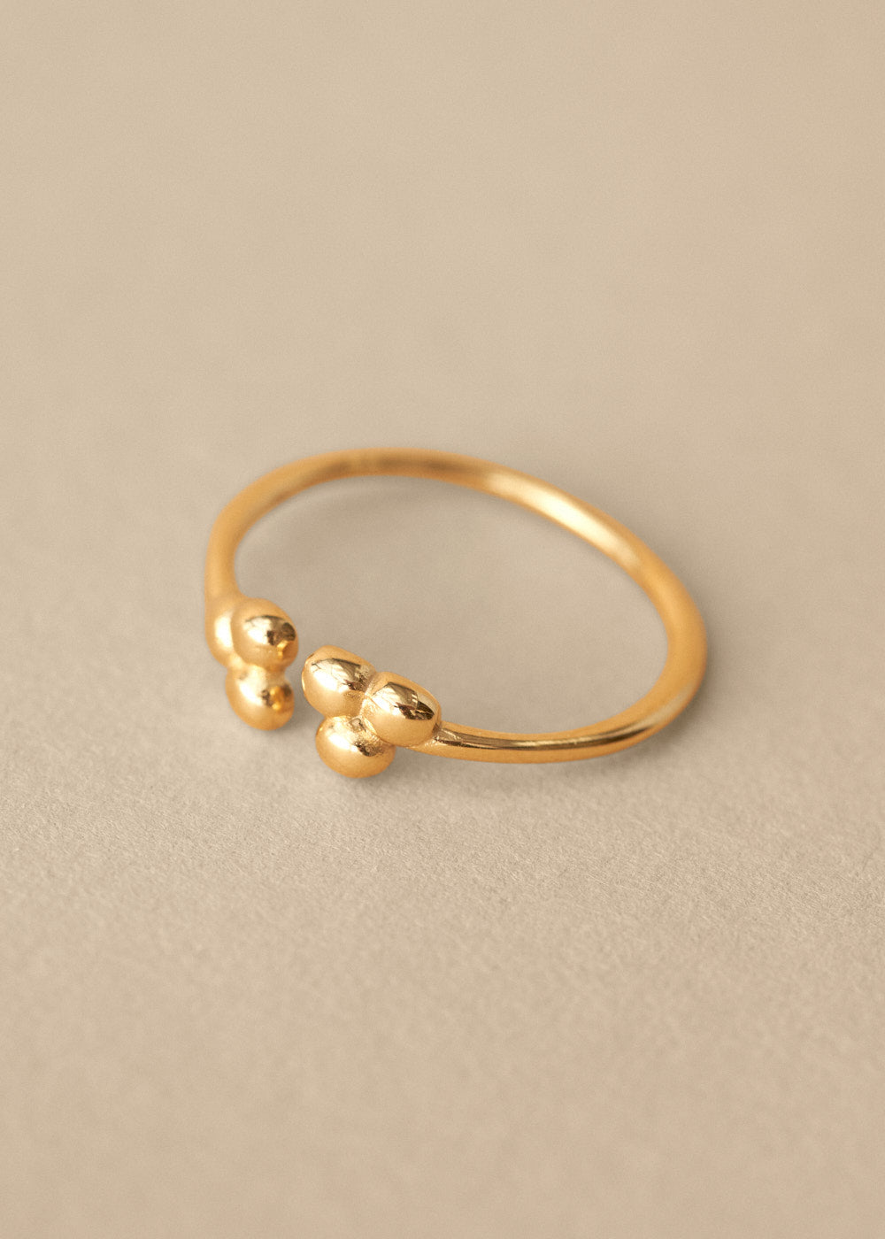 Crafted with a slender gold band, the Chamomile Ring features an open, adjustable centre detailed with bubbled accents. A subtle statement and an elegant final touch.