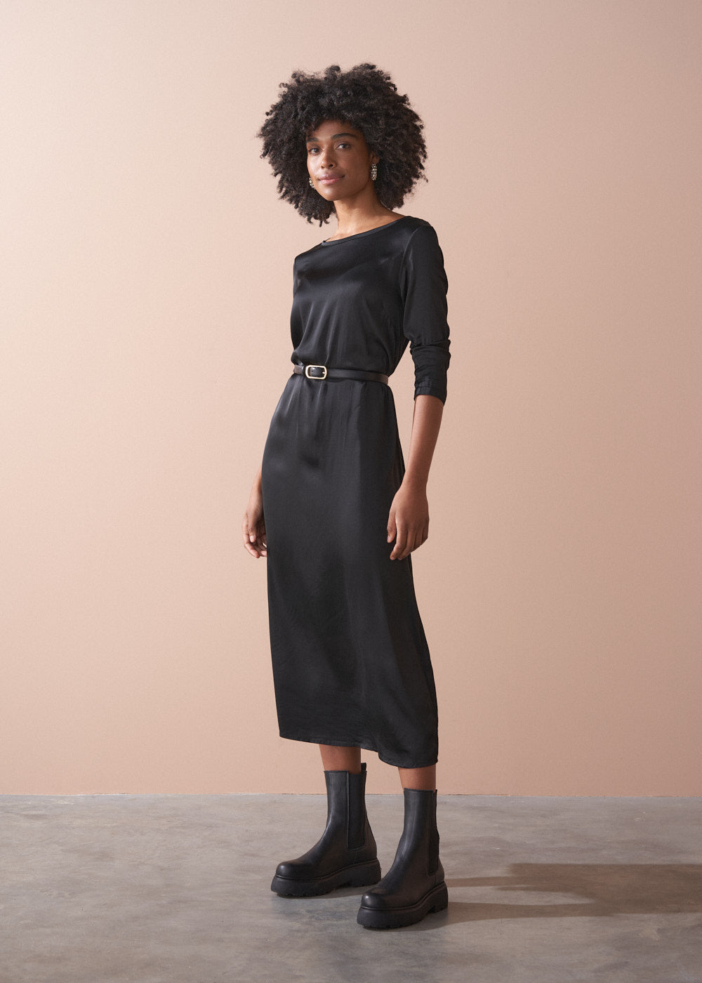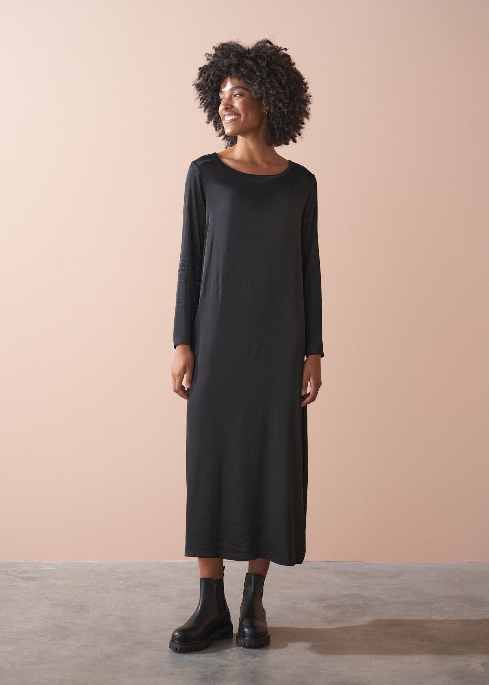 The Coco Dress is cut from ultra-soft stretch satin, designed to move with the body while offering effortless comfort. Falling to a flowing maxi length, it skims the frame to create a sleek, elegant silhouette.