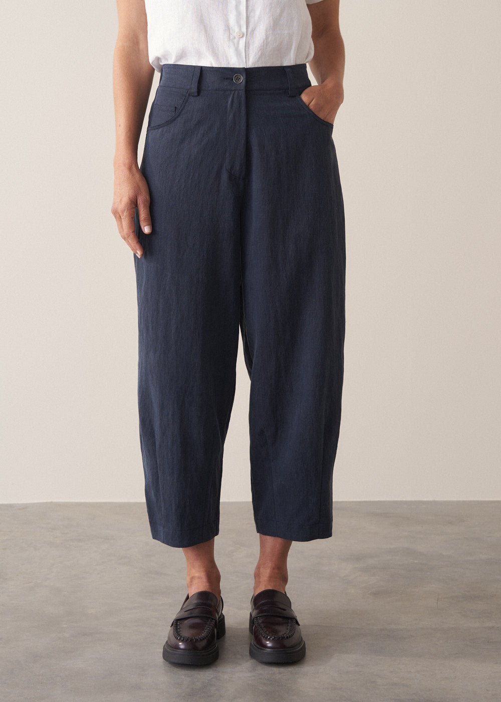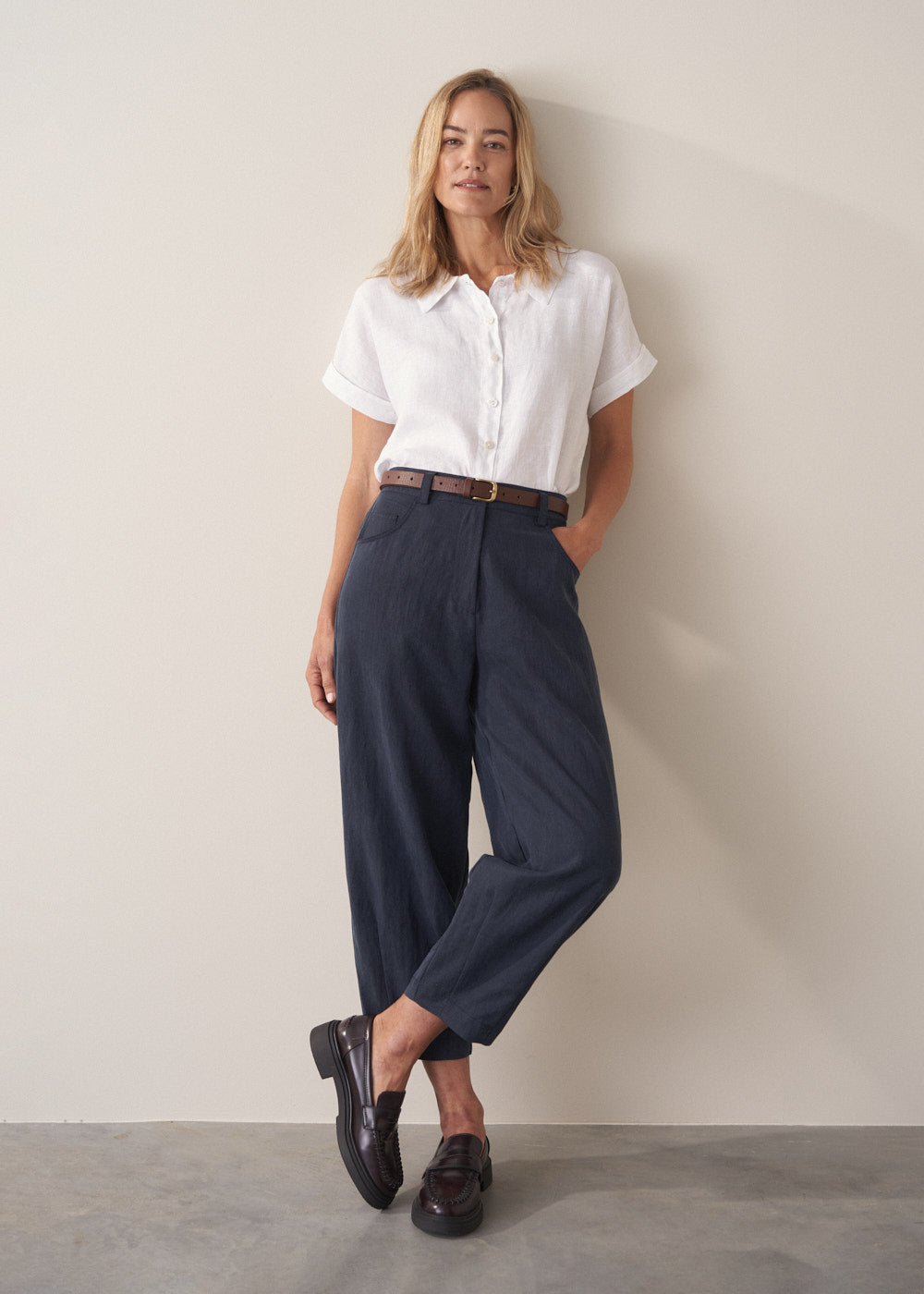 The latest take on our popular Elise trousers is now available with a smooth cupro finish that combines comfort and sophistication to create a temperature-friendly, versatile wardrobe essential.