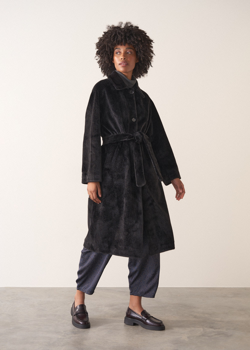 A statement for your winter wardrobe, the fur coat is a classic and timeless style. Our Harper coat made from luxuriously soft faux fur features a deliberately oversized fit and long length for extra cosiness for wear year after year.