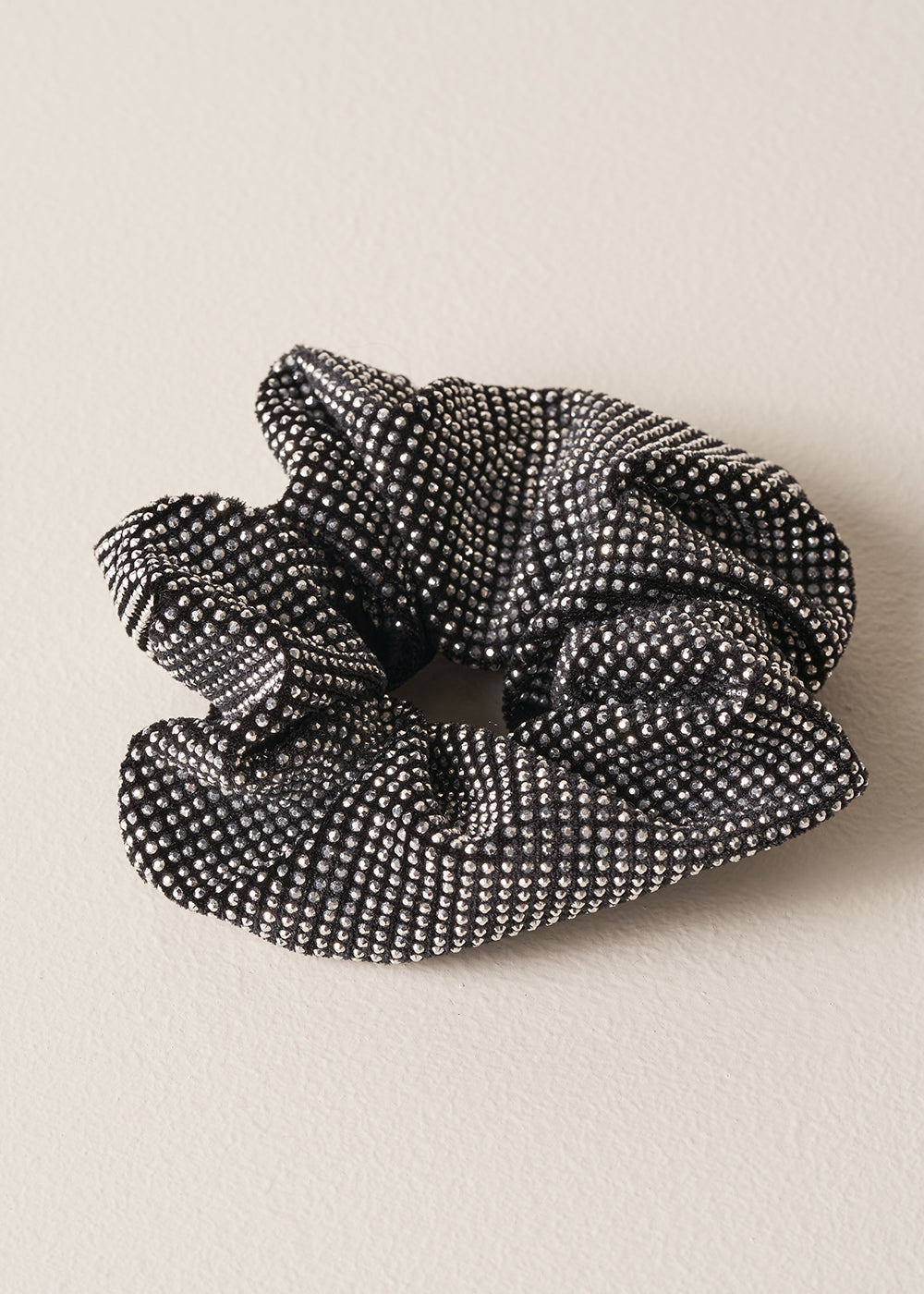 Adorned with silver sparkles, the Issy scrunchie adds a touch of shine to your updo.