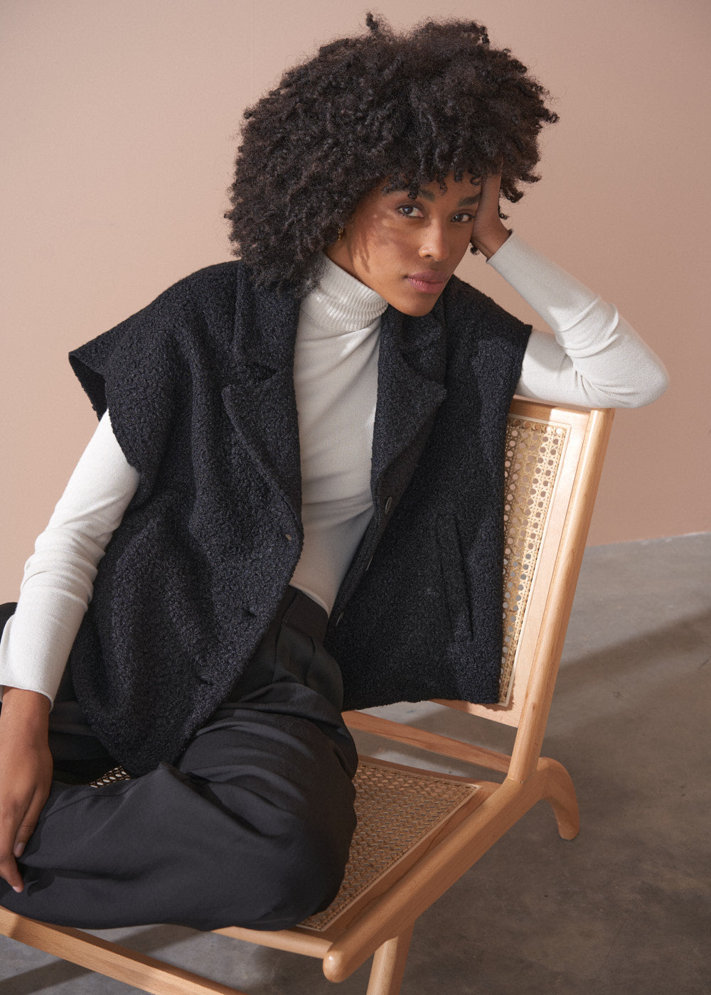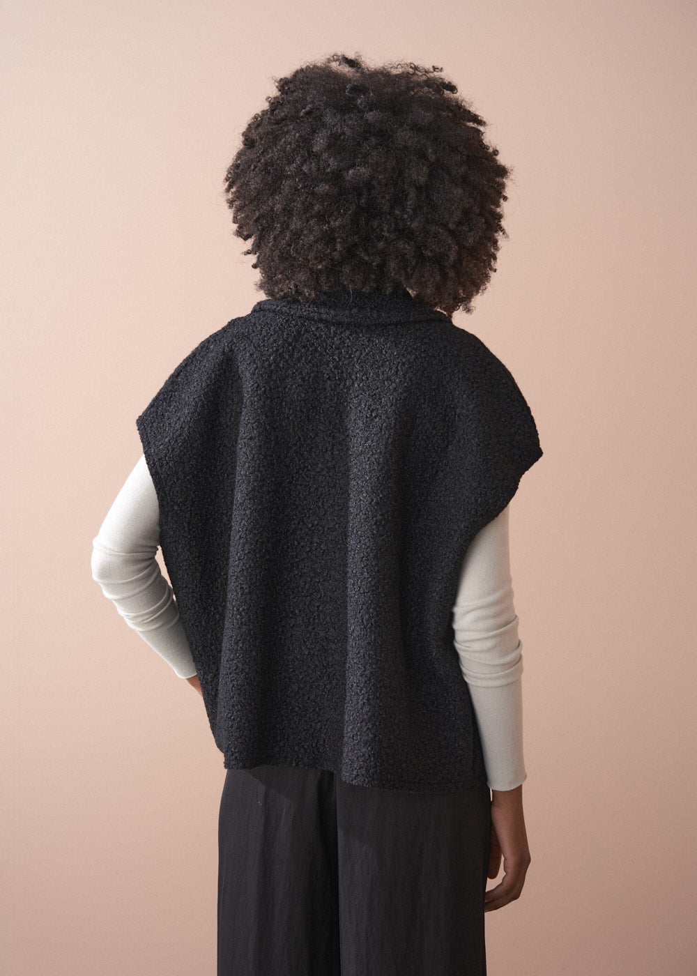 IVY BOUCLE OVERSIZED GILET - BLACK