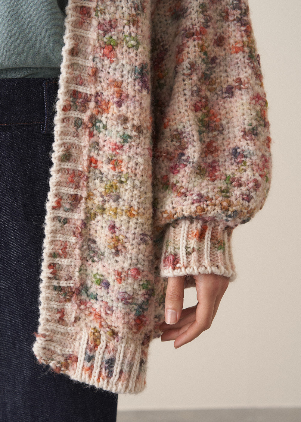 The statement piece of the season, Jeanie Cardigan features a chunky knit, a relaxed, oversized fit and multi-tonal rainbow accents, striking the perfect balance of cosiness, texture and colour.