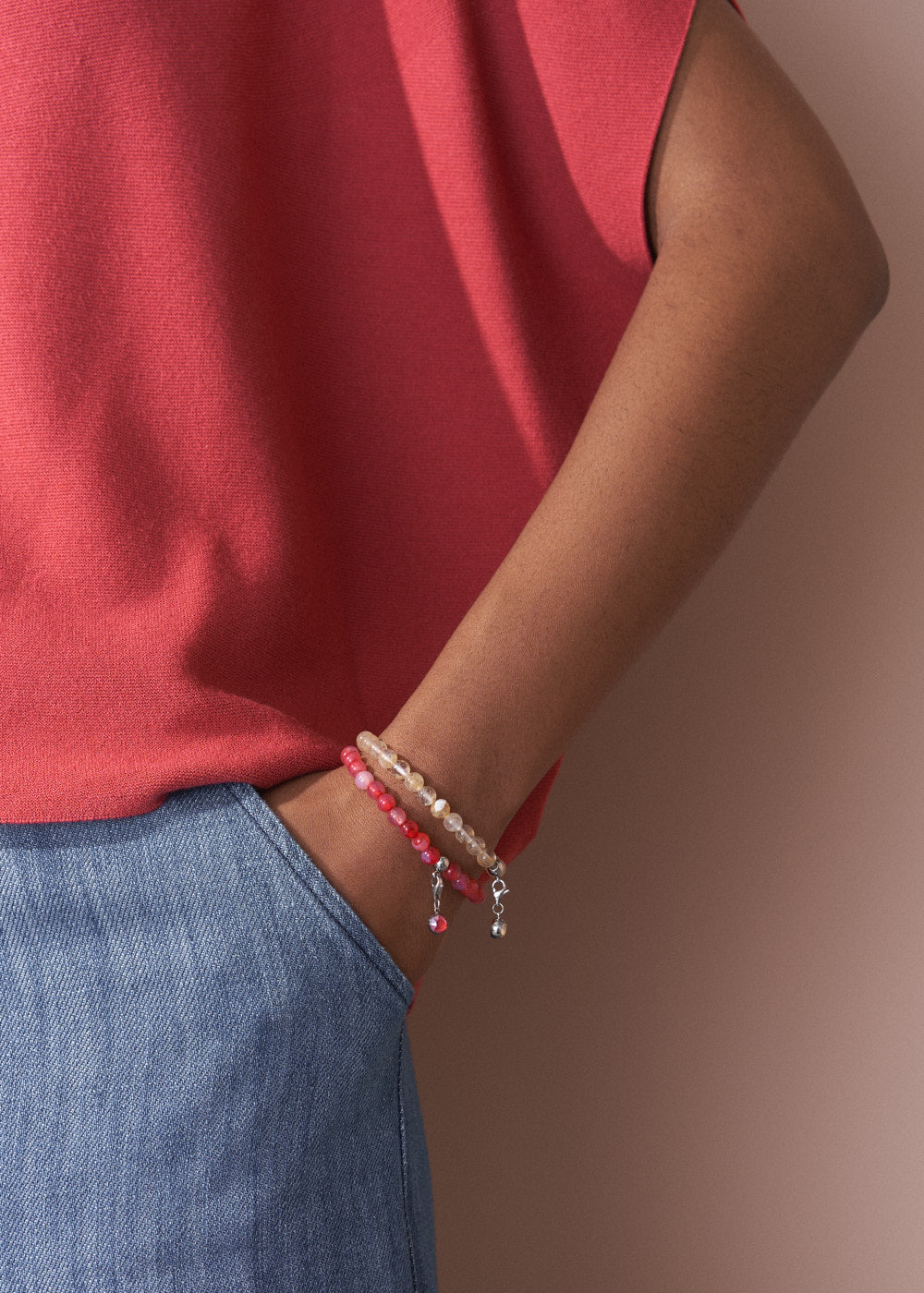The Lilly Bracelet showcases a stunning array of glass beads in a collection of natural tones. Accented with a complementary crystal charm, it’s the perfect piece to add a subtle pop of colour.