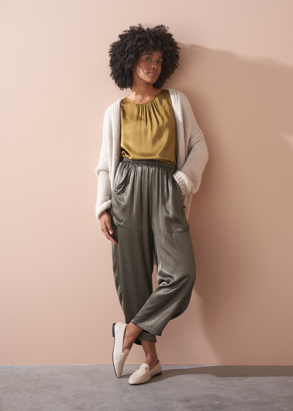 LILLY SATIN TOP - OLIVE