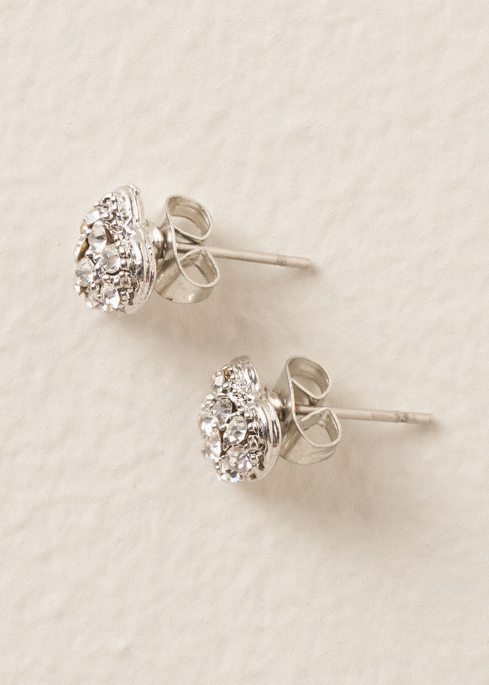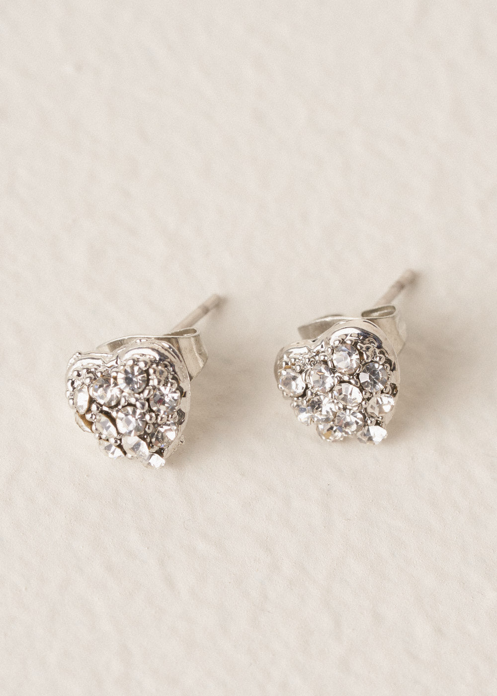 The Logan Earrings feature a chunky, heart-shaped silver stud adorned with twinkling crystals. A sparkling accompaniment to finish off a look or a perfect gift for a loved one.