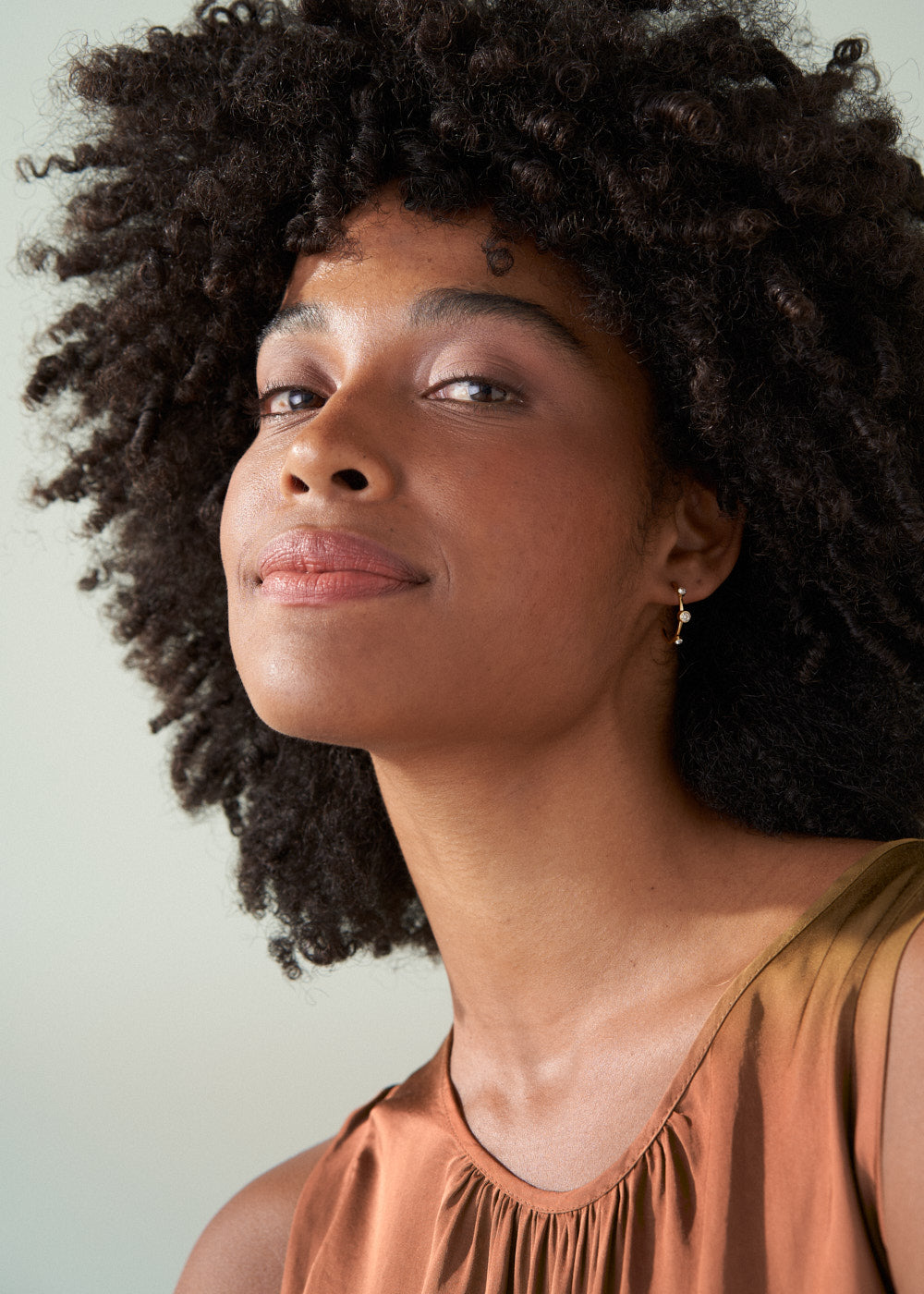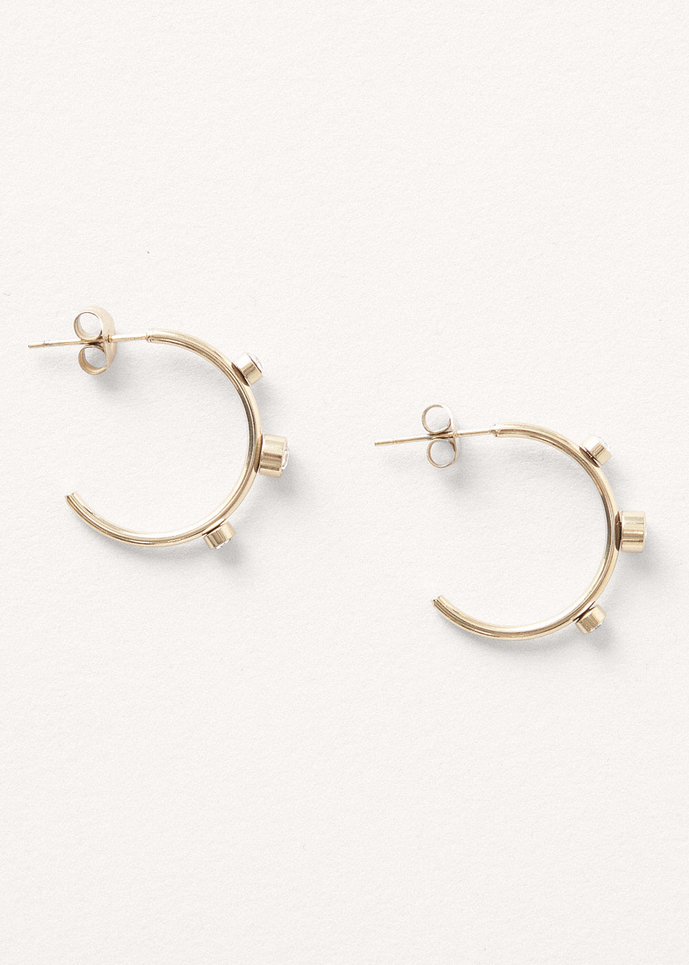 A contemporary take on the classic hoop, the Maeve earrings showcase an elegant gold half hoop gracefully adorned with three shimmering crystals.