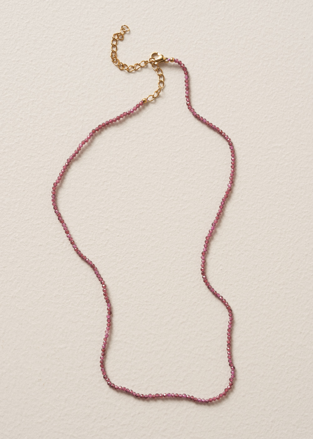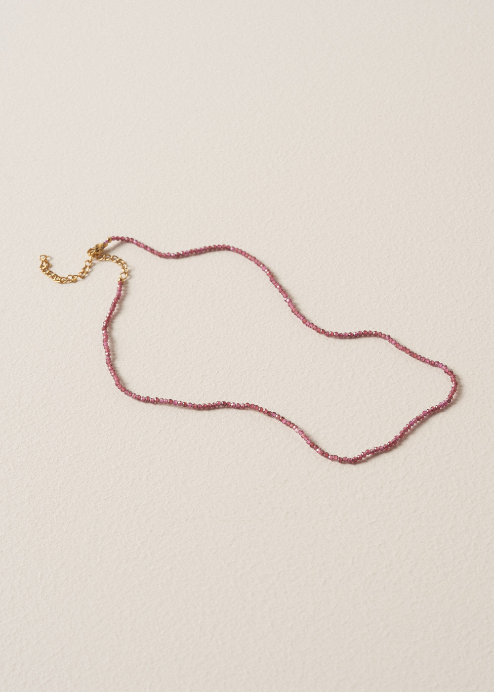 Perfect for adding subtle colour and an extra twinkle to your look, the Paloma Necklace is a short, elegant strand of faceted plum-coloured beads, finished with a sleek gold clasp.