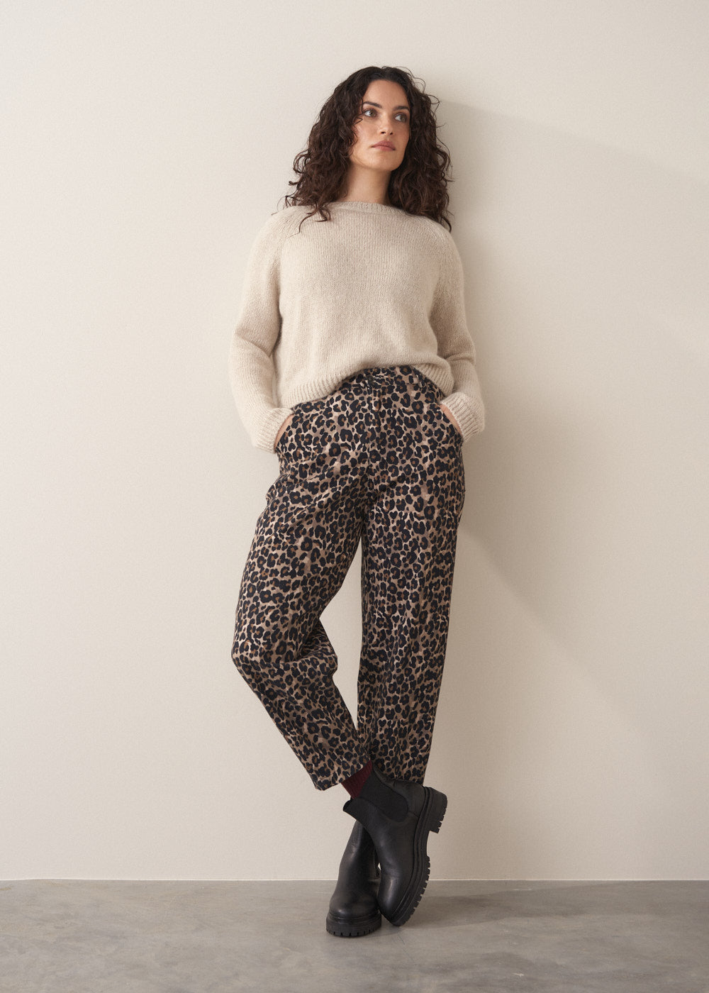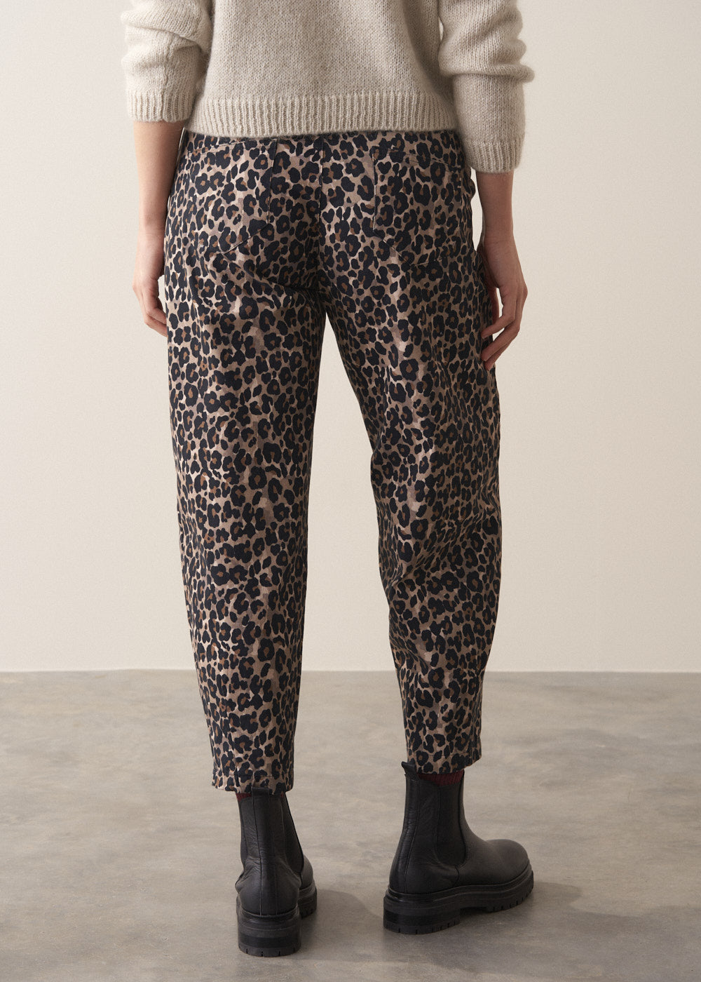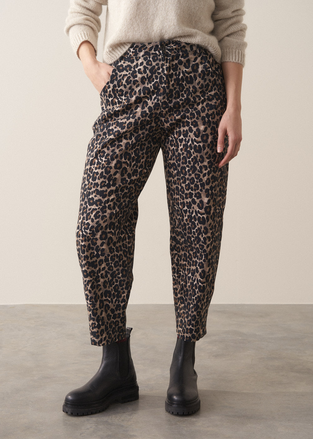 A returning Busby & Fox bestseller in a fresh new tone, the Paulo trousers are back. With a classic barrel-leg silhouette, they're crafted from comfortable stretch cotton and are finished in a statement taupe leopard print.