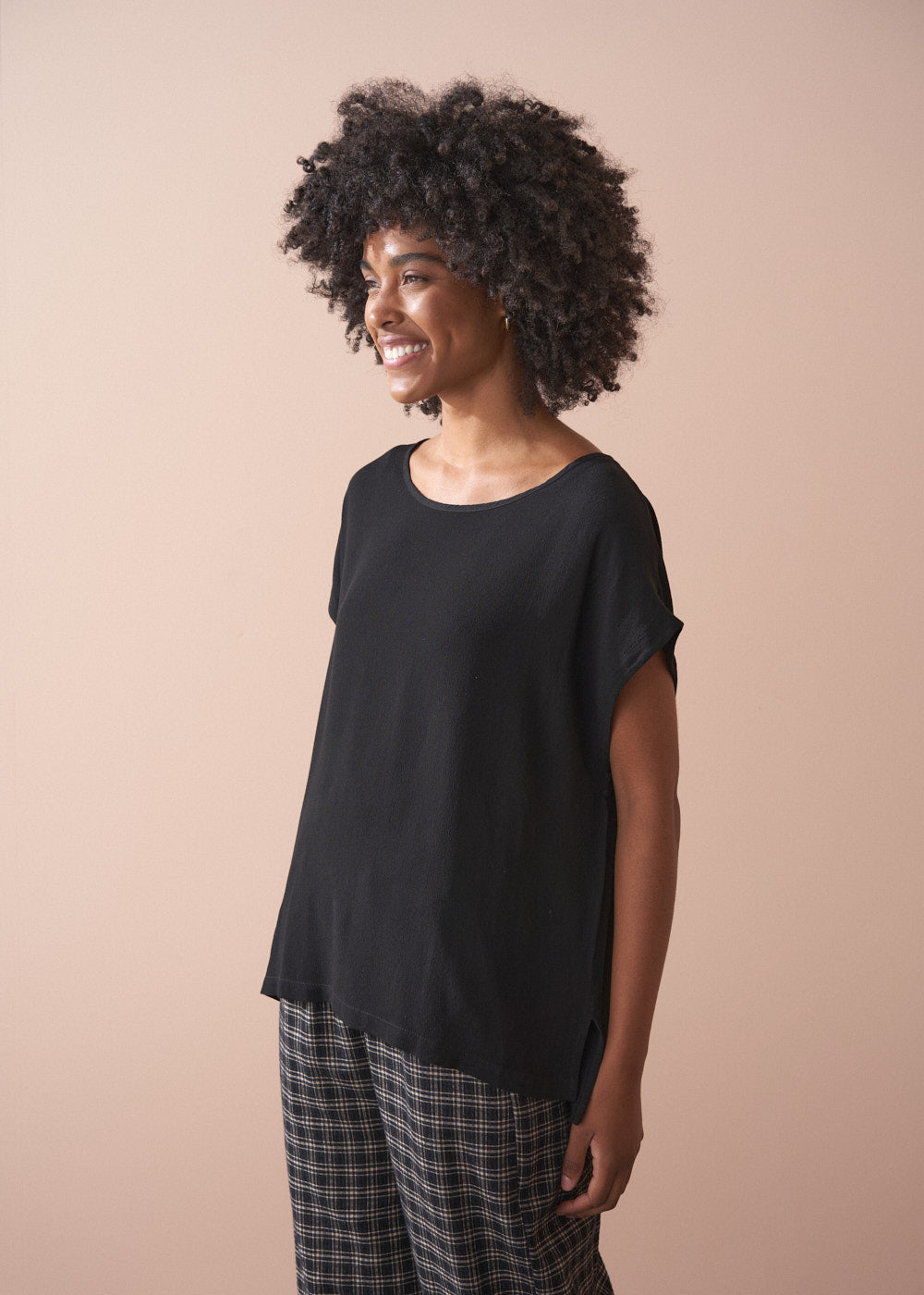The Pia Top offers a sophisticated twist on the classic t-shirt. Crafted from tactile crepe viscose, it features a relaxed, boxy fit with short sleeves. An endlessly versatile piece for year-round wear.