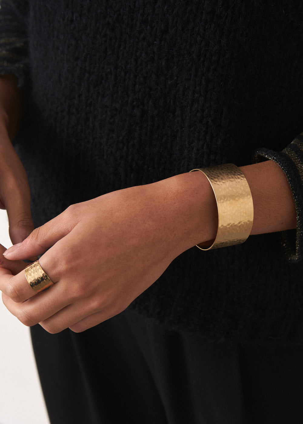 Finished in shimmering gold and featuring an intricate hammered design, the Riora ring strikes the perfect balance between statement and elegance.