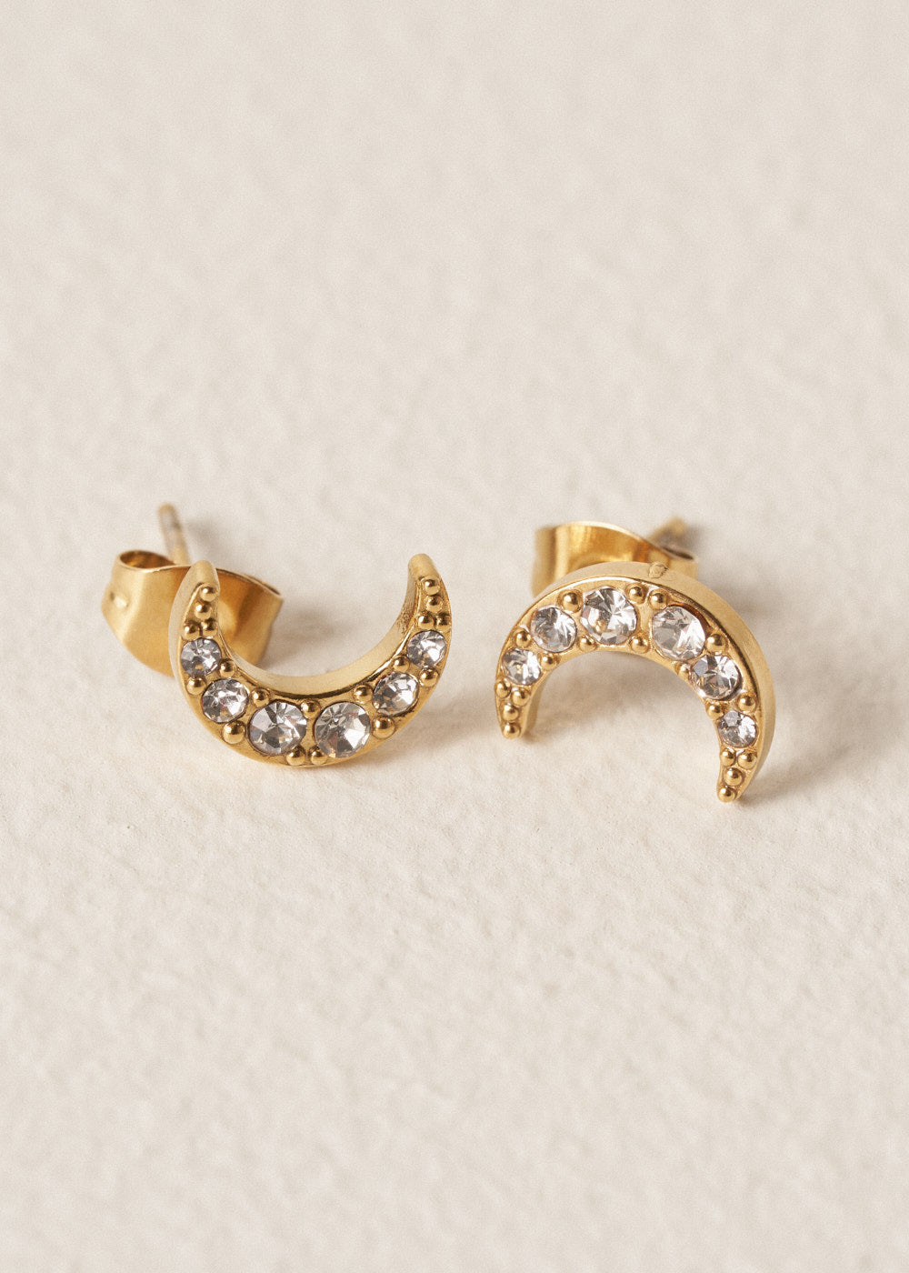 Add some lunar sparkle to your look with the Selene Earrings. Featuring twinkling crystals set on a gold-gilded stud, they’re the perfect subtle shimmer for any occasion.